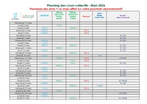 Planning des cours collectifs